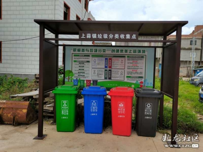 这是晋宁区上蒜镇农村设置的垃圾分类箱,也是标准划一,标识醒目。