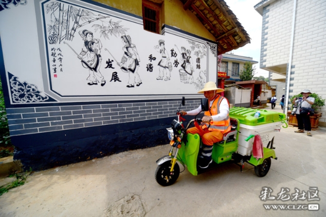 这是西山区观音山社区配备的垃圾环卫车,专职环卫人员巡游为村子进行保洁工作。
