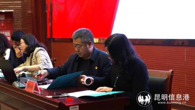 官渡区教育体育局总督学魏泽明与云溪小学校长李红燕签订责任书 孙轲熠/摄