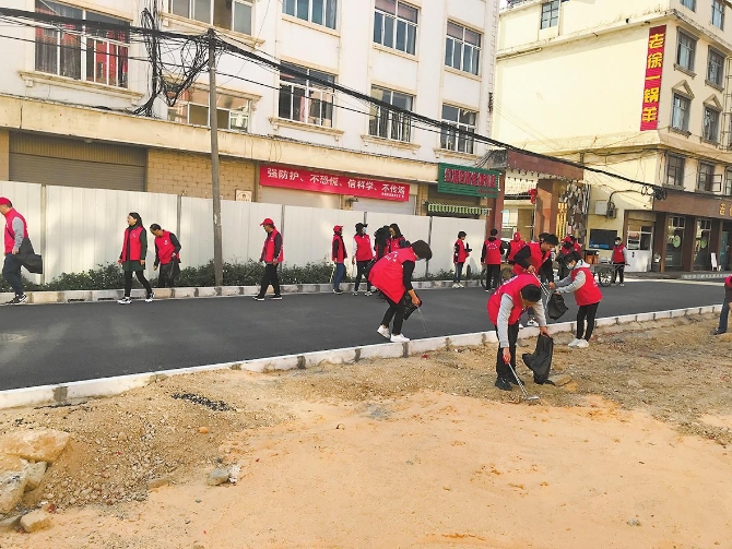 红塔区李棋街道组织200余名志愿者在9个社区开展环境整治。 本报记者 冯天娇 摄