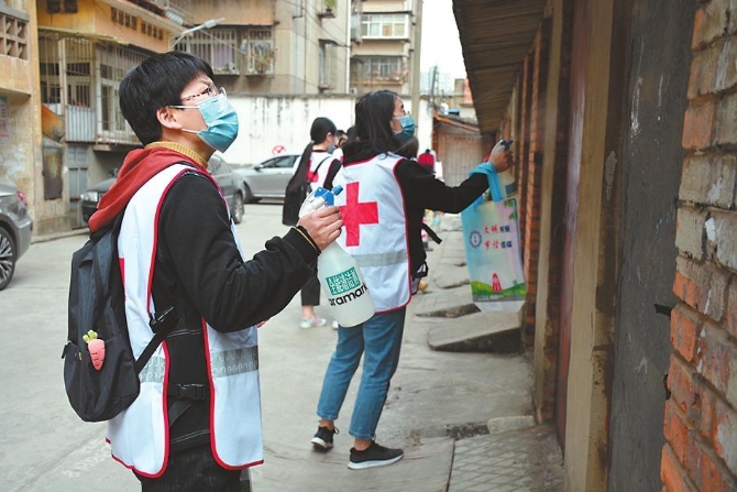 红塔区玉兴街道志愿者们深入社区进行消杀保洁,助力玉溪文明城市创建工作。 本报记者 张思思 摄