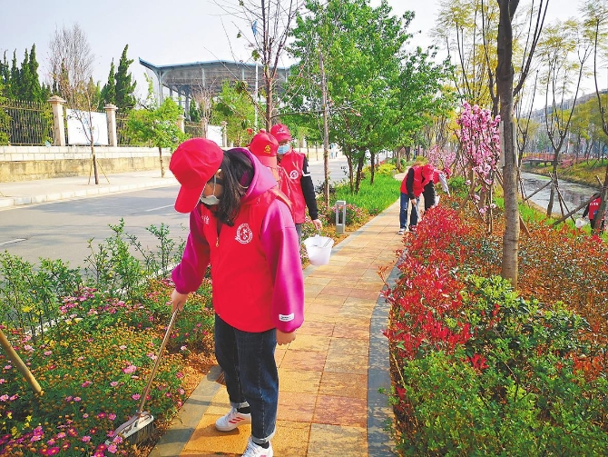 江川区500余名志愿者兵分几路,在星云湖沿岸和主城区开展志愿服务活动。 本报记者 何蕾 摄