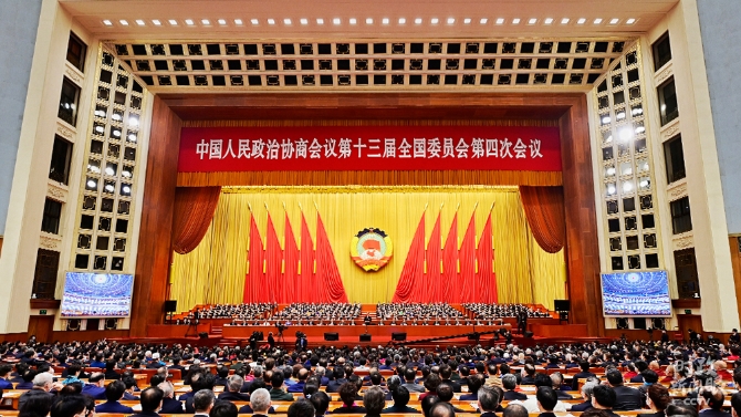 △全国政协十三届四次会议闭幕会现场(总台记者孙楠、国广记者李晋拍摄)