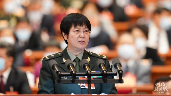 △3月7日上午,全国政协十三届四次会议举行第二次全体会议,陈薇委员作了发言。去年她刚刚获得“人民英雄”国家荣誉称号。(总台国广记者李晋拍摄)