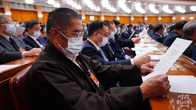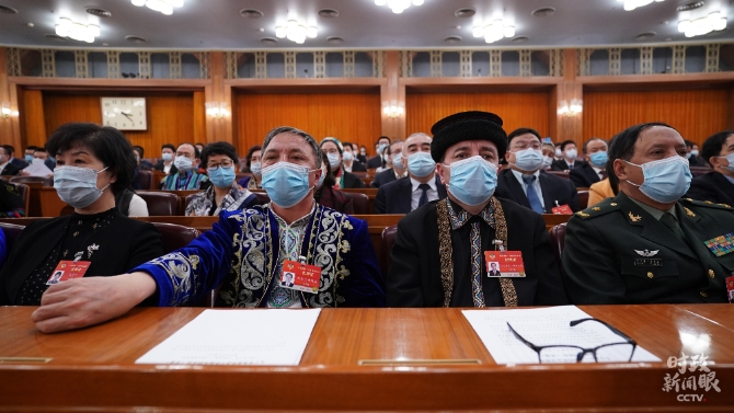 △3月8日下午,十三届全国人大四次会议举行第二次全体会议,代表们听取和审议全国人大常委会工作报告和两高报告。(总台央视记者王哈男拍摄)