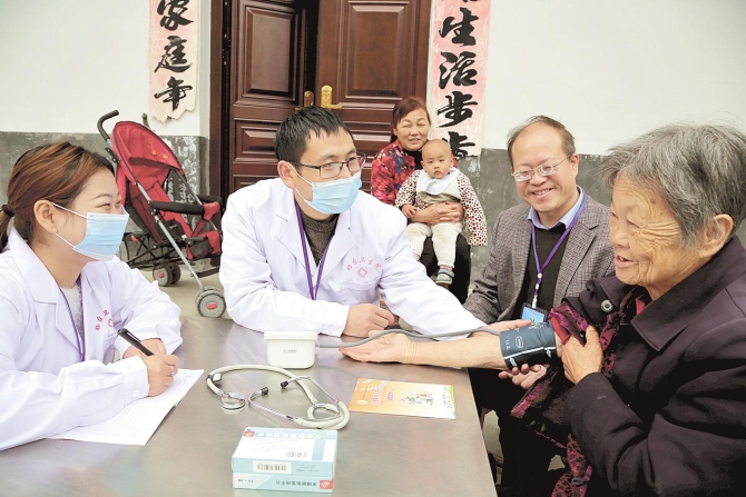 去年11月13日,竹山县楼台乡卫生院组织医务人员进村开展“一对一”健康回访和体检。(视界网 陈昌荣 张强 摄)