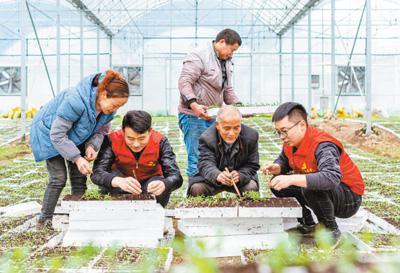 贵州省黔东南苗族侗族自治州三穗县党员志愿者帮助农户育茄子苗。 田健摄(人民视觉)