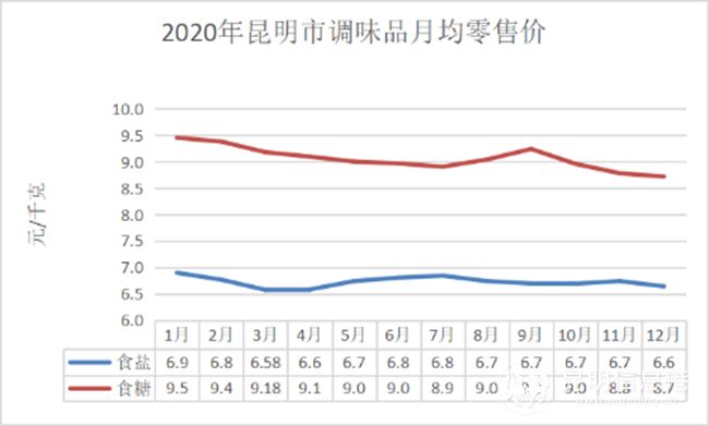 去年,全市食盐平均零售价格为6.73元/千克,环比上涨6%;食糖平均零售价格为9.06元/千克,环比下跌1.8%。