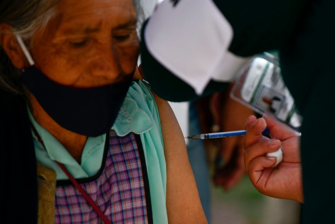 墨西哥伊达尔戈州小城阿卡克索奇特兰9日开始接种中国科兴新冠疫苗,当地首批接种人群为60岁及以上的老年人。