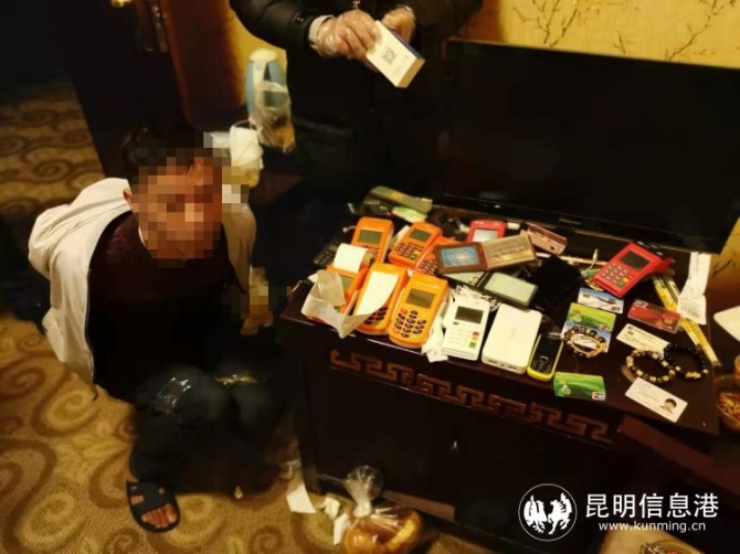 2021年1月8日上午10点左右,民警在官渡区大板桥镇某宾馆内抓获了嫌疑人李某国,在房间内,当场查获POS机20余台,银行卡30余张。目前案件正在进一步侦办中。