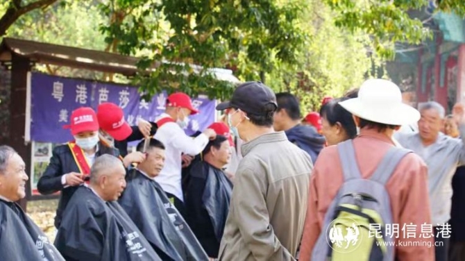 此外,今天是中国传统节日“二月二龙抬头”,老昆明都有“剃龙头”的传统,在这一天理发图个好彩头。为此,公园依旧是邀请了昆明粤港芭莎职业培训学校16名师生,现场为市民免费理发。一大早公园早已游人如织,很多市民早早地入园,准备沾点“龙王会”的喜气。很多市民排起长龙等待理发,一些小朋友剃出”西瓜头“、”阿福头“等可爱造型,活动现场热闹祥和。据统计,从上午9点至12点,免费在黑龙潭公园”剃龙头“的游客及市民约300人。