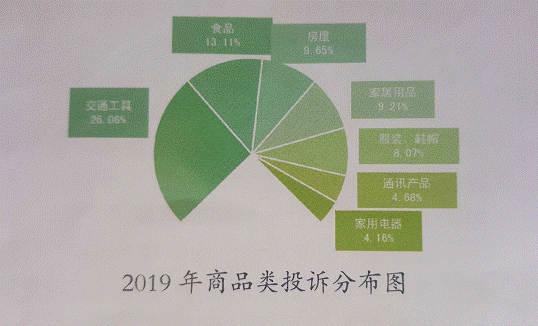 2019年,商品类投诉量排名前5的依次是交通工具类、日用百货类、食品类、通讯器材类、装修建材类。服务类投诉量排名前5的依次是居民服务、电信服务、文化娱乐服务、修理维护服务和住宿服务。