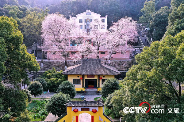 方竹寺数株古樱树位于庐山北山山麓,距今已有300多年历史,温润的局地气候让它比牯岭花木提前绽放,往年一般3月份开花,花期十来天,可谓庐山百花齐放“春之先声”的代表景色。今年气候偏暖,2月中旬就开花,花期提前了1个月。几株大樱花树长在庐山腰,与周边绿树掩映成趣,微风吹过,樱花雨飘落而下。