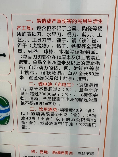 “如果未明确表示相关信息,请您自主遗弃。”根据安检处张贴的《限制携带物品目录》内容:个人随身携带充电宝不得超过2个,且单个容量不得超过20000mAh。安检人员介绍,为保障市民出行安全,昆明地铁正开始严查,如发现市民进站携带不符合规定的充电宝,将劝其另择交通工具或把违规充电宝投入安检处设置的自弃物箱。