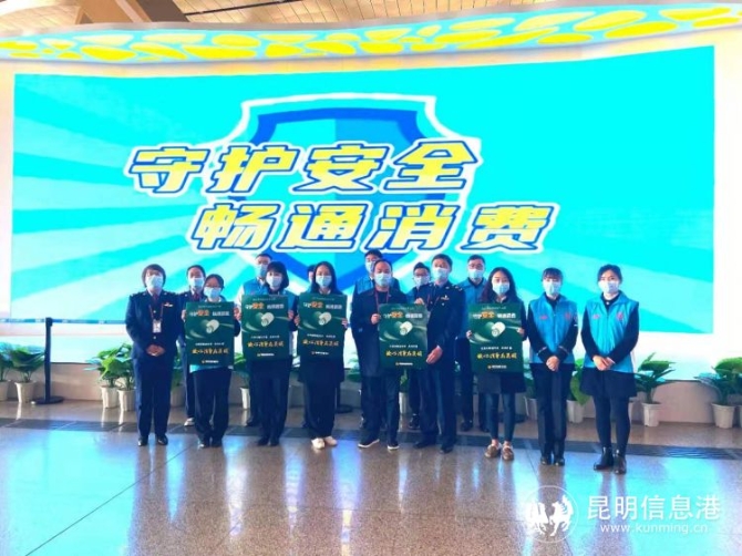 昆明信息港讯 记者俞逍 3月15日,在第39个国际消费者权益保护日到来之际,昆明市场监管局空港分局(以下简称“空港分局”)以昆明长水国际机场为主战场,围绕“守护安全 畅通消费”消费维权主题,多方联动,在辖区开展“纪念3·15国际消费者权益日”宣传活动。旨在进一步改善空港经济区消费环境,促进消费畅通,增强广大消费者依法维护自身合法权益的意识,共同营造安全放心的消费环境。