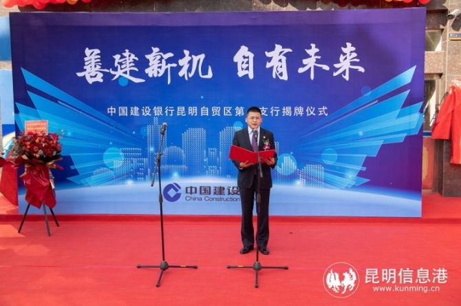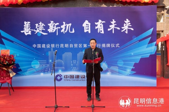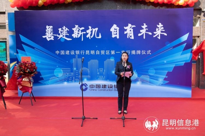 中国(云南)自贸试验区昆明片区(昆明经开区)商务金融服务局副局长班文娟,中国建设银行昆明城东支行党总支书记、行长张征等参加活动并致辞。