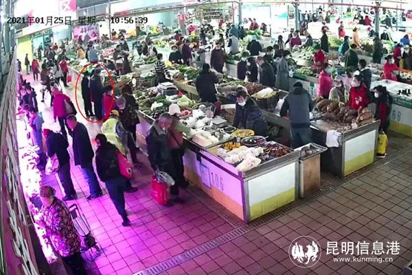 自1月下旬以来,茭菱派出所连续接报辖区蔡家村农贸市场发生针对老年人的扒窃案件。民警迅速对现场进行勘查、走访。经调查发现,嫌疑人于1月25日至27日8时至11时之间,从西山区兴苑路附近窜至五华区蔡家村农贸市场内,再随机物色作案目标,确定对象后用刀片将受害人随身携带的环保手提袋侧面割开,将挎包内的手机、钱包、现金等财物盗走后逃离现场。
