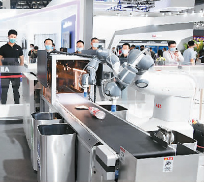 观众在2020年服贸会综合展区参观一款人工智能垃圾分类系统演示。新华社记者 任 超摄