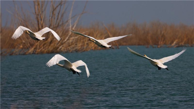 随着气温不断回升,位于新疆巴音郭楞蒙古自治州博湖县境内的博斯腾湖冰雪消融,湖畔迎来了大批候鸟繁衍栖息,它们时而翩飞起舞,时而觅食嬉戏,湖水、芦苇、各类水禽鸟类互为辉映,演绎出一幅美妙的“候鸟天堂”画卷。(年磊)