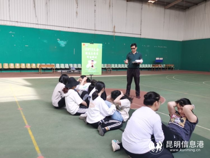 昆明信息港讯 记者李丽朱 3月20日,COP15云南省筹备办志愿者工作部在云南财经大学龙泉路校区对该校参与大会的志愿者进行了体能考核,其他12个工作也站同步进行了体能考核。