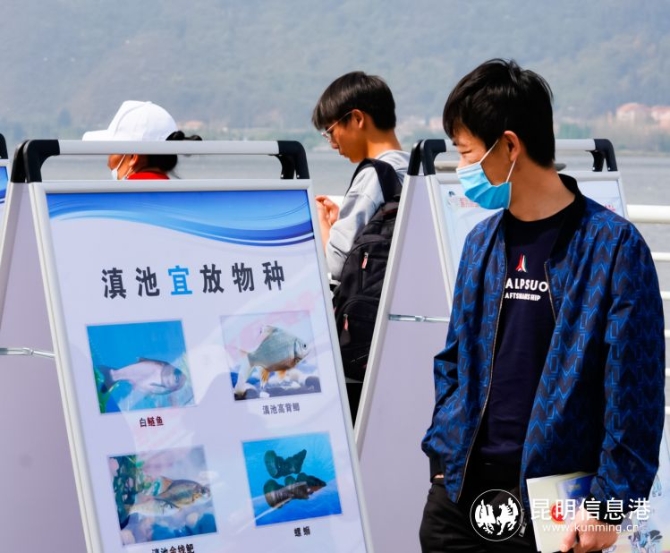 市民观看滇池保护宣传展板 记者徐毅杰摄