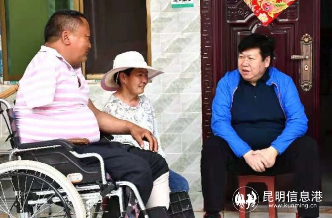 云南省委宣传部二级巡视员宁德锦、省委宣传部宣传教育处副处长陈东、省残联宣文处处长王维进、昆明市委宣传部宣传教育处处长李朝晖一行,于3月19日前往乌龙镇坪子村芭蕉箐小组考察、看望、慰问张顺东李国秀夫妻,并鼓励他们再接再厉,在乡村振兴道路上走出一片新天地。