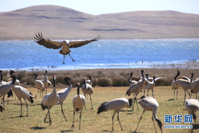 经过冬天的休整,现在黑颈鹤们养足了精神,在春日暖阳下觅食、嬉戏。王远剑说,目前,黑颈鹤陆续开始北飞,预计近期将完成迁徙。它们将飞越800公里,最终抵达若尔盖大草原繁衍生息。