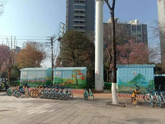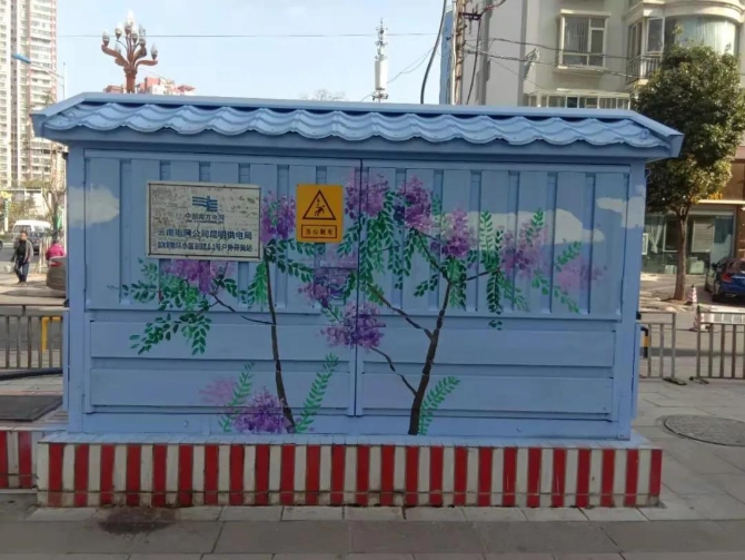 近日,昆明市盘龙区桃源街居民鲁先生发现,在他家附近,原本毫不起眼的变电箱明显变了模样。有的画上了七彩祥云和万事如意图案,跟旁边的春联红包一条街相映成趣。“挺好看的,电箱不像以前那样简陋单调了,还多了几分街头艺术的感觉。”他说。