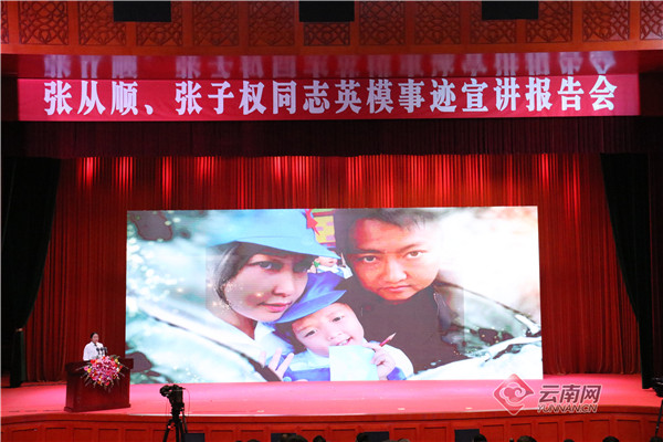 3月23日下午3时,“张从顺、张子权同志英模事迹宣讲报告会”在临沧市会议中心举行,由两位英模生前的战友和亲人组成的6人宣讲团,分别从好所长、好战友、好丈夫等不同的角度对父子二人的过往生活进行了回忆,深情讲述了那些亲眼见证的英雄事迹。临沧各单位500余人到场聆听了报告,并通过临沧融媒App等平台进行了直播。