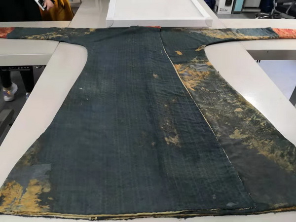 暗花绮袍己经修复完成。光明日报记者 王瑟摄