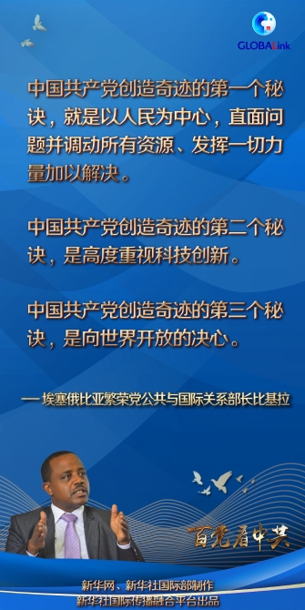 比基拉表示,包括埃塞俄比亚在内的发展中国家可以从中国过去数十年的发展中学到很多东西。他强调,过去几十年,中国共产党领导中国人民创造了真正的奇迹。“我衷心祝贺领导中国人民创造奇迹的中国共产党,祝贺从中受益的中国人民。”
