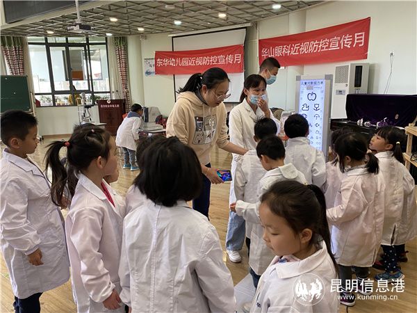 为了解学生视力状况,切实加强学生视力保护工作,树立爱眼护眼的健康意识,普及科学用眼知识。3月25日至26日,昆明市盘龙区东华幼儿园做为盘龙区教体局近视防控试点单位,在全国近视防控宣传教育月期间,特联合专业眼科医疗机构昆明华山眼科医院,先后走进昆明市盘龙区东华幼儿园朝九晚五园区及东华园区,为500余名师生进行了眼健康检查,并建立青少年近视发育档案。