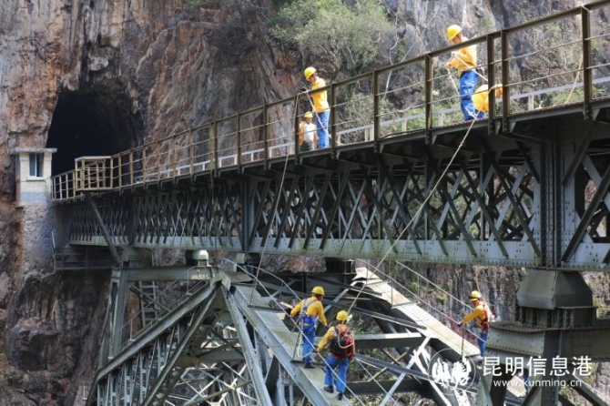 由于滇南地区雨季来临较早,防洪准备工作必须赶早做足。头一天已经申请了天窗点外计划,23日上午,中国铁路昆明局集团公司开远工务段开远桥路车间主任陶学刚带领湾塘桥隧工区11名职工,计划对人字桥进行汛前隐患排查。