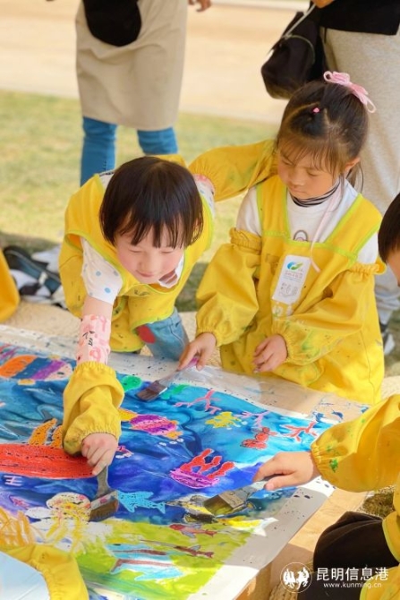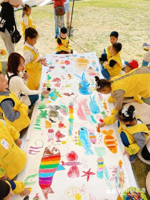 昆明信息港讯 记者李红鸾 2021年3月27日,金鼎奖童趣探索最后一期在保利春湖举行。本期创作的主题是“高原湖泊里的生物”。参加探索的孩子们通过集体创作,完成了两幅充满想象的画作。
