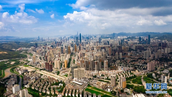 深圳市城区景色(2020年8月26日摄,无人机照片)。新华社记者 毛思倩 摄