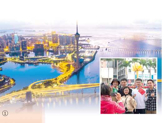 图②:2019年12月20日,在澳门金莲花广场,游人拍照留念。