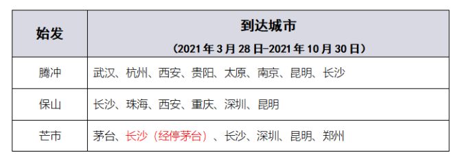 昆明信息港讯 记者上官艳君 3月28日起,民航业将迎来夏秋新航季,为满足旅客不断提高的出行需求,昆明航空(下称:昆航)在换季之际,积极优化航线网络,调整新航季的航班计划,将新增“昆明-西双版纳-泉州”、“深圳-芒市”、“深圳-迪庆”、“太原-重庆-台州”以及“长沙-运城”5条往返航线。