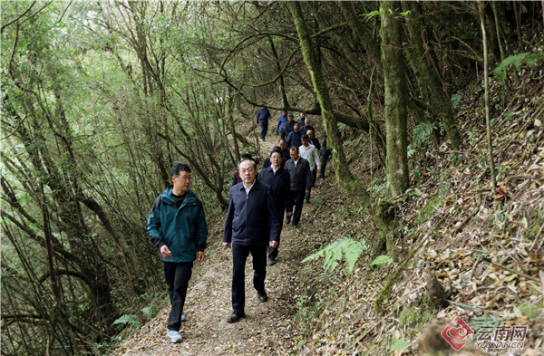 阮成发、王予波一行深入高黎贡山国家级自然保护区高黎贡山古道公园调研。记者 周灿 摄