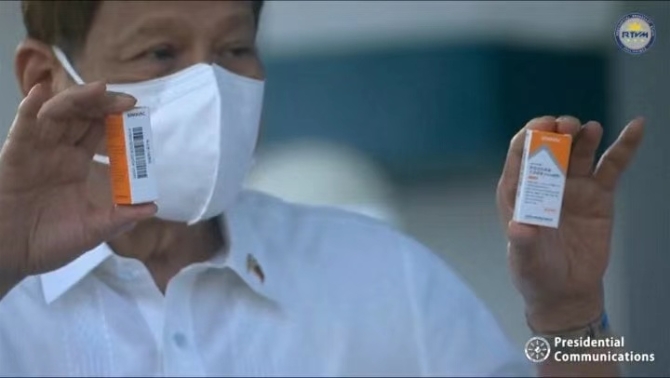 杜特尔特衷心感谢中国政府协助菲方采购科兴疫苗,并表示只要疫情形势允许,希望能早日赴华向中国领导人当面表达谢意。