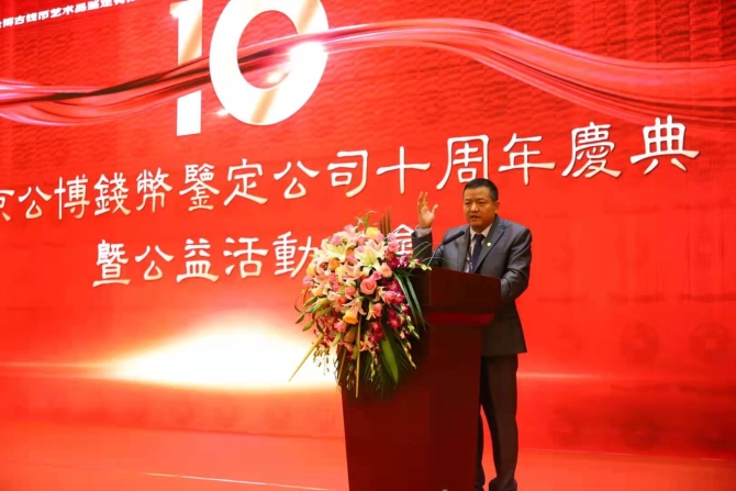在主题演讲部分,公博创始人段洪刚对公司发展历程及业务进行了详细介绍,北京公博古钱币艺术品鉴定有限公司(英文字母简称GBCA)成立于2011年3月,是率先在工商局正式注册的一家以钱币和民间文物艺术收藏品鉴定为主营业务的国内机构。成立伊始,公博评级率先创立了100分中国古钱币评级标准,为中国钱币鉴定评级行业赢得了广受尊重的国际声誉,公博古钱100分制目前已经成为全国古钱评级行业的基本标准。