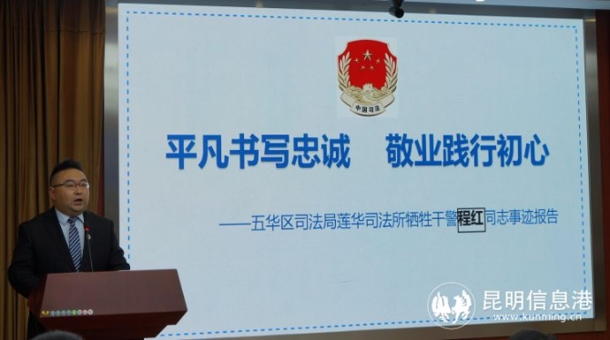 昆明信息港讯 记者周智宇 3月30日,昆明市司法行政队伍教育整顿先进典型事迹报告会举行。会上,来自各县(市)区不同岗位的四位司法行政先进典型代表作为报告团成员,讲述自己或身边先进典型忠诚履职、无私奉献的感人事迹,展现全市司法行政队伍守护正义、执法为民的担当情怀。