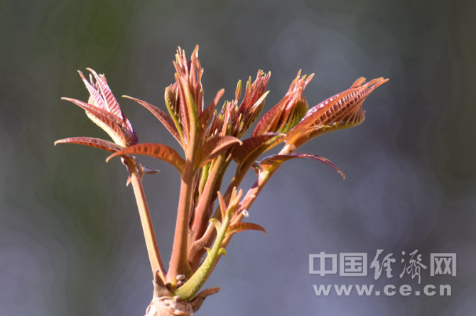 香椿的嫩芽又被称为“树上的蔬菜”,每年春季谷雨前后,也是香椿开始上市的季节。香椿树上新萌发的嫩芽成为蔬菜,被制作成各种菜肴端上餐桌。香椿芽是一道美味,尤其是春天刚长出的头茬香椿芽。