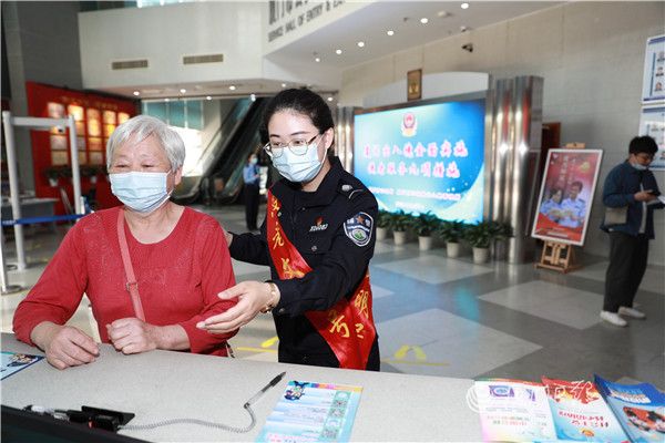 9、设施标识人性化。在办证大厅门口设立便民服务站,放置老花镜、轮椅、应急药品等物资,为行动不便和有需要的老年人免费取用。在自助填表机、自助拍照机等电子设备及各等候区张贴“老、婴、孕、残、幼”优先的明显标识,服务老年人不留死角。