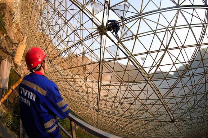 ▲ 2020年1月9日,工作人员对FAST反射面板进行检修。