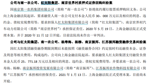 而从重大诉讼、仲裁事项中可以看出,2020年海通证券及其子公司因股票质押业务、两融业务涉及到5起诉讼,涉及到的上市公司有恺英网络(维权)、红太阳(维权)、吉药控股(维权)。