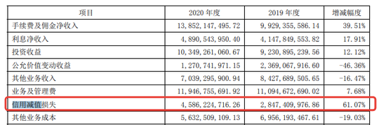 年报显示,海通证券全年信用减值损失达45.86亿元,相当于2020年度净利润的42.17%,比2019年增长了61.07%。海通证券表示,主要是应收融资租赁款减值损失增加。