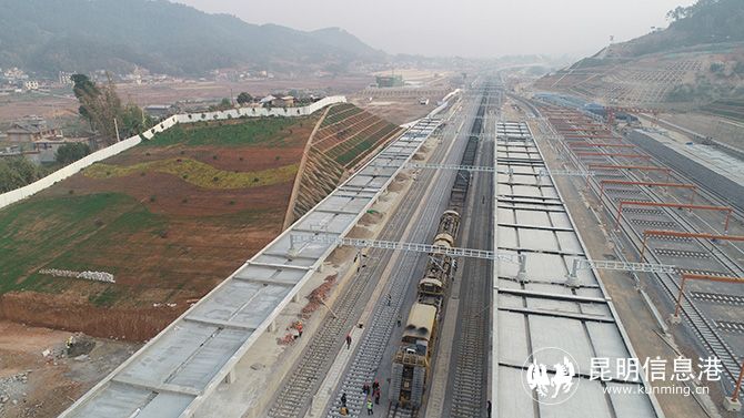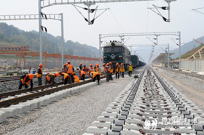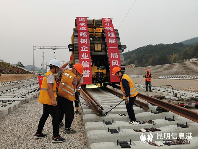 昆明信息港讯 记者上官艳君 4月1日,随着中铁一局铺架机将500米长的钢轨缓缓铺设到宁洱站,中老铁路中国段在建玉溪至磨憨铁路铺轨任务过半,为今年底开通运营奠定了基础。
