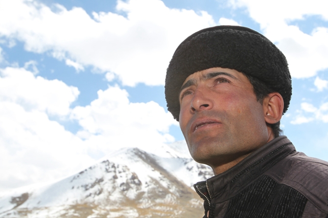 ↑塔吉克族全国人大代表拉齐尼·巴依卡是一名护边员、更是一名共产党员、一名退伍军人。2021年1月4日,他为解救落入冰窟的儿童,献出41岁的宝贵生命,被追授“时代楷模”称号。这是2011年9月23日拉齐尼·巴依卡在新疆红其拉甫边境线的巡逻途中。 新华社发(李翔 摄)