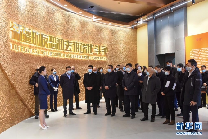 新疆是中国反恐和去极端化斗争的主战场,1990年至2016年底,新疆发生了数千起暴恐活动,造成大量无辜人员伤亡和财产损失。参访团一行参观了新疆的反恐和去极端化斗争主题展,了解到当地已连续四年多未发生暴恐事件,各族人民的生命财产安全得到了有效保障。尼泊尔驻华大使马亨德拉·巴哈杜尔·潘迪说:“我很高兴地看到中国政府和人民有效打击了恐怖主义,他们做了非常出色的工作。中方还通过职业技能教育培训等手段,为受极端思想感染的人提供了拥抱新生活的机会。”