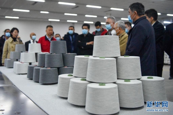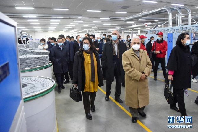 来疆参访代表团在新疆一家纺织企业参观(4月1日摄)。新华社记者 丁磊 摄